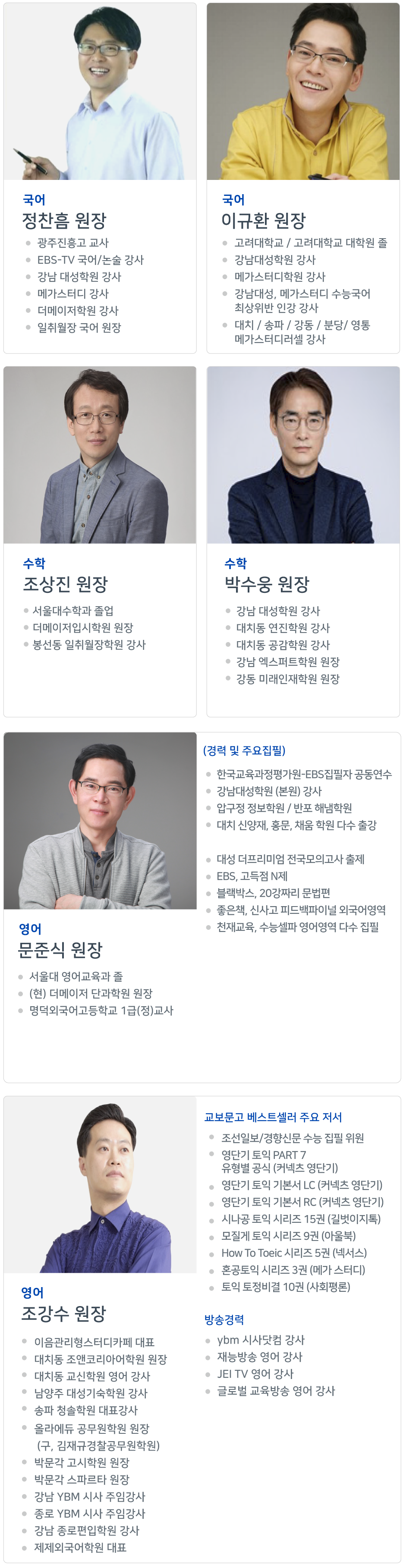 “EBS, 강남대성, 노량진 메가스터디, 대치동” 학원가에서 활동 중인